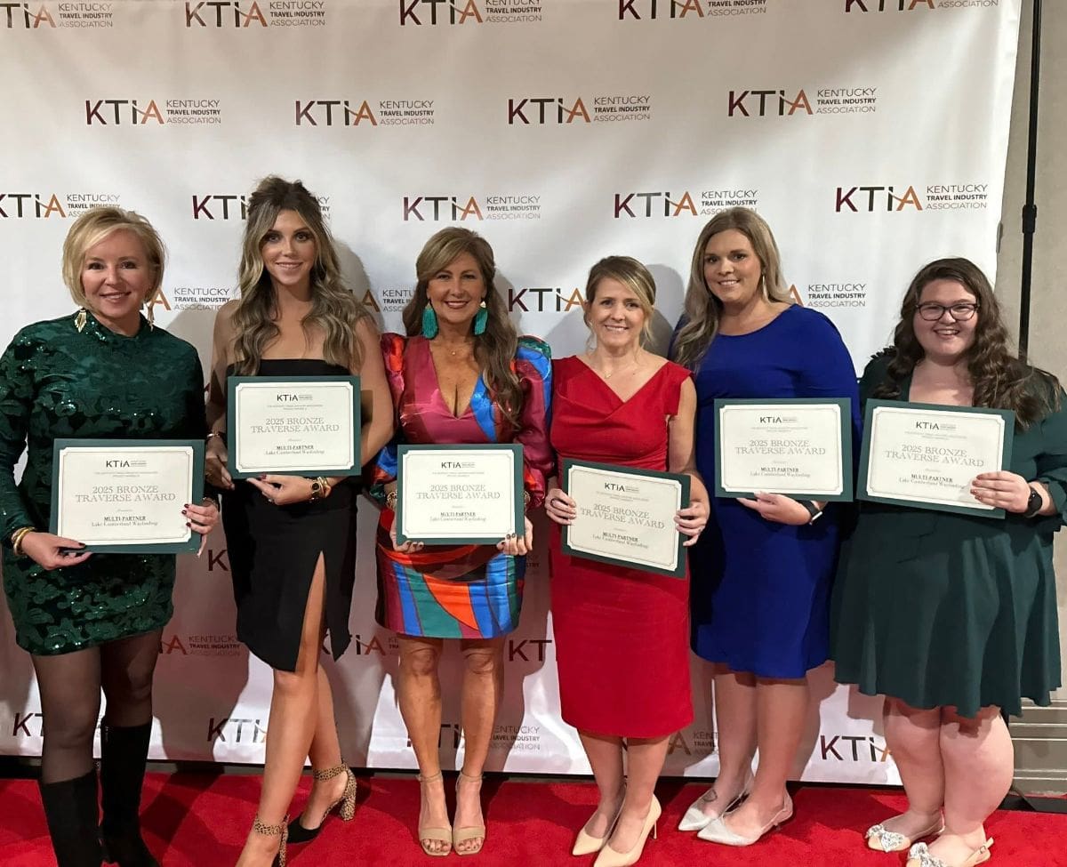 Representatives from Lake Cumberland Tourism, See Somerset Tourism and Lake Cumberland Tourist Commission celebrate Traverse Awards received at the KTIA Fall Conference Nov. 5-7.