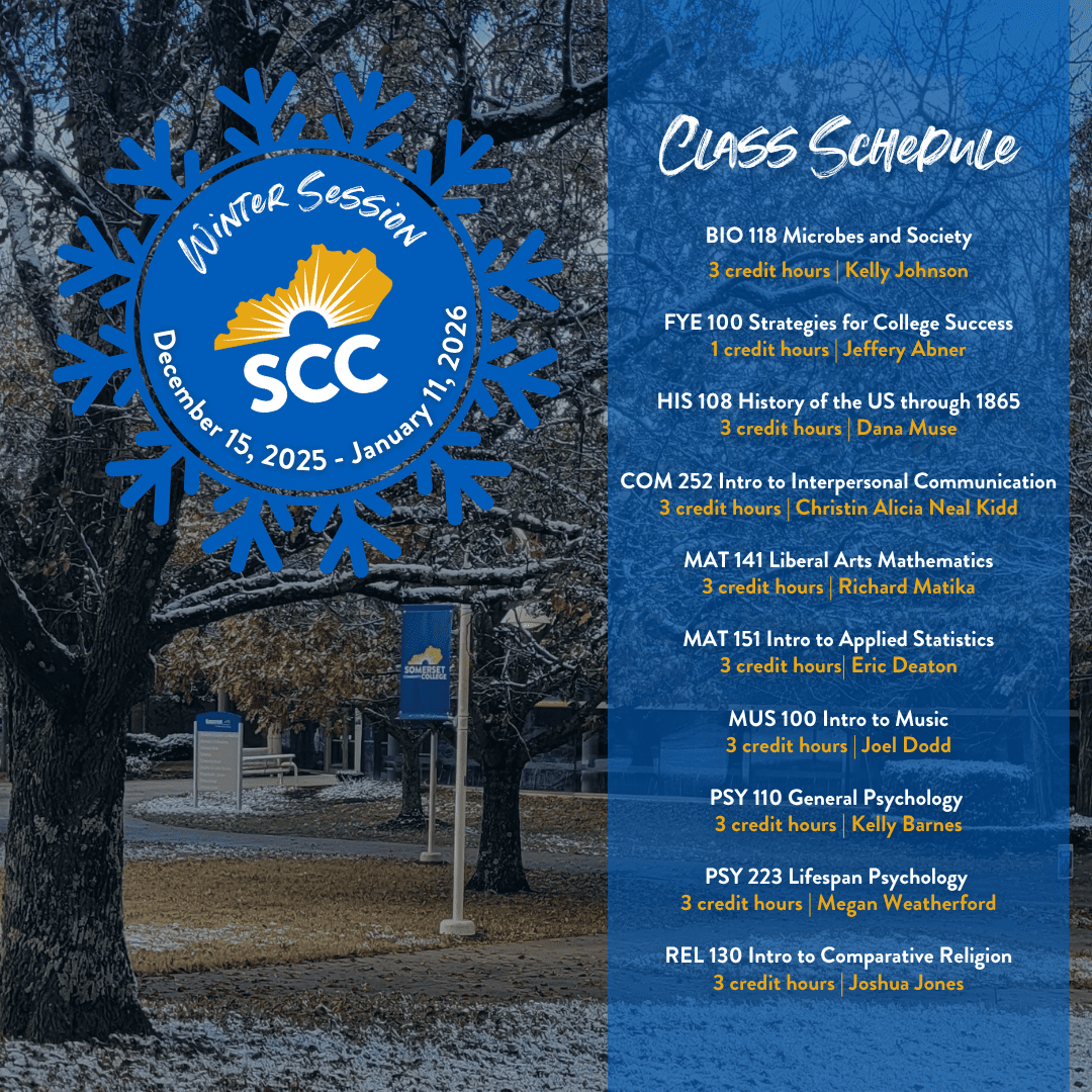 Somerset, KY– Somerset Community College (SCC) is excited to announce Winter and Spring class schedules, designed to provide educational opportunities that cater to your individual needs. With flexible online classes, evening options, and the chance to study on campus just two days a week for select programs, SCC makes it possible for everyone, from busy professionals to recent high school graduates, to pursue their educational goals.
